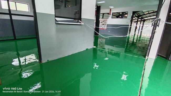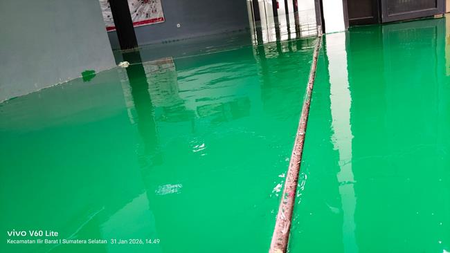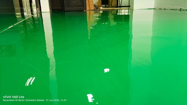 Lantai epoxy memberikan permukaan yang kuat, tahan abrasi, tahan bahan kimia, serta mudah dibersihkan. Cocok untuk: